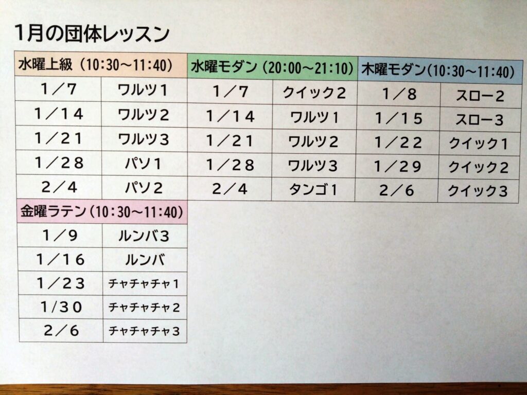 2026.01.03お知らせ 団体レッスンのお知らせ いつも何かと変更がありますがこの予定で始まります。よろしくお願いします。 戻る お知らせ一覧へ戻る Category お知らせ ブログ New Article 2026.01.03お知らせ 団体レッスンのお知らせ 2026.01.03お知らせ 1/6はフリーダンスです! 2026.01.03ブログ 新年あけましておめでとうございます!